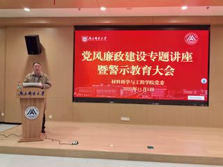 材料科學(xué)與工程學(xué)院黨委召開黨風(fēng)廉政建設(shè)專題講座暨警示教育大會 為進(jìn)一步強(qiáng)化學(xué)院黨員干部和教職工的紀(jì)律意識、規(guī)矩意識和廉潔自律意識,筑牢拒腐防變的思想道德防線,材料科學(xué)與工程學(xué)院黨委于2025年11月5日下午召開黨風(fēng)廉政建設(shè)專題講座暨警示教育大會...